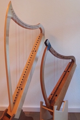 Harfe rechts: Böhmische Harfe, 22 Saiten, gebaut von Christian Patt